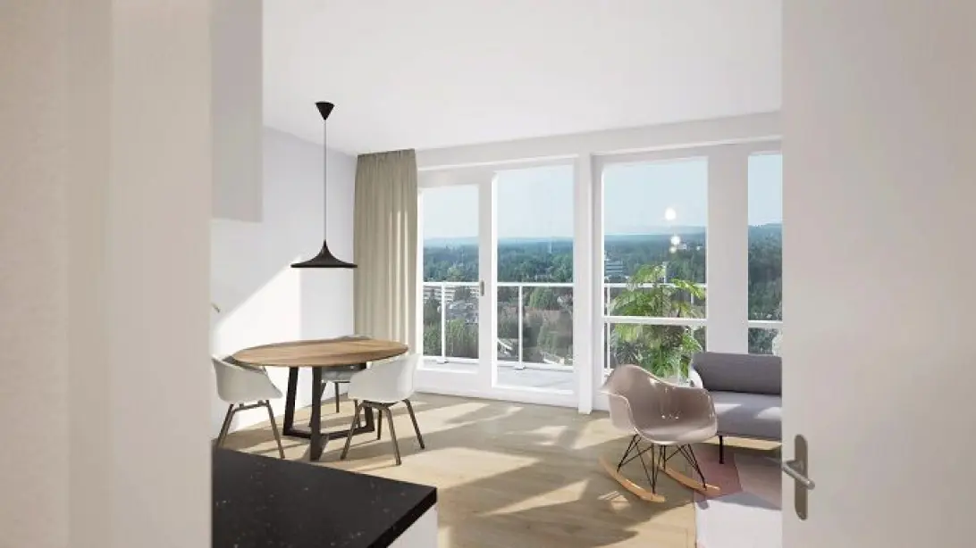 Klaar voor de volgende stap? In dit gloednieuwe wooncomplex is er voor iedereen een geschikt appartement! Het moderne wooncomplex bestaat uit 77 luxe huurappartementen: zowel twee- als driekamerappartementen variërend van 60 m² t/m 64 m² en verspreid over 12 woonlagen. De woningen zijn allemaal voorzien van een open keuken met inbouwapparatuur, een luxe badkamer en een breed balkon. Ook zijn er diverse parkeerplaatsen te huur bij het appartementencomplex.