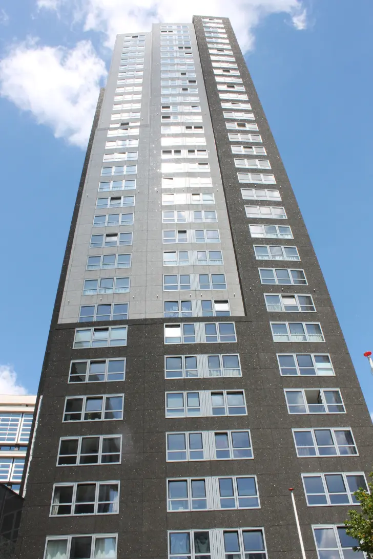 De woning heeft een woonoppervlak van circa 85 m² en is gelegen op de 15e etage van het appartementencomplex. De woning heeft een ruime woonkamer. Aan de woonkamer ligt ook de separate keuken welke voorzien is van diverse inbouwapparatuur. De woning beschikt over 1 slaapkamers (ca. 15 m2). De badkamer is uitgerust met ligbad, douche en wastafel. In de hal bevindt zich een separaat toilet en handige bergruimte.