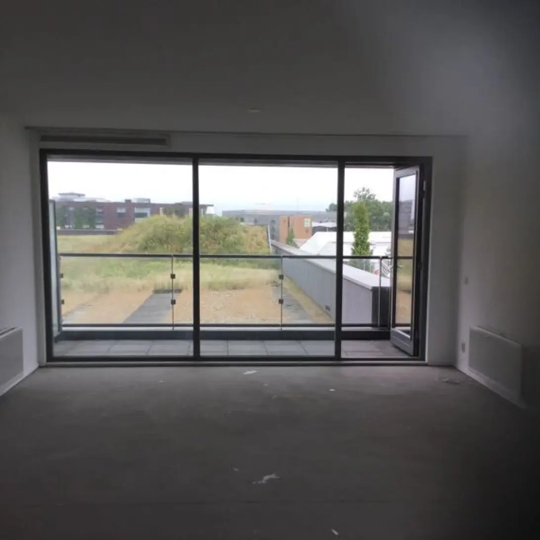De woonkamer is voorzien van open keuken en een ruim balkon met uitzicht over het Baltimoreplein en het winkelcentrum van Almere-Buiten. Er is 1 slaapkamer aanwezig. De badkamer is voorzien van een douche en wastafel.