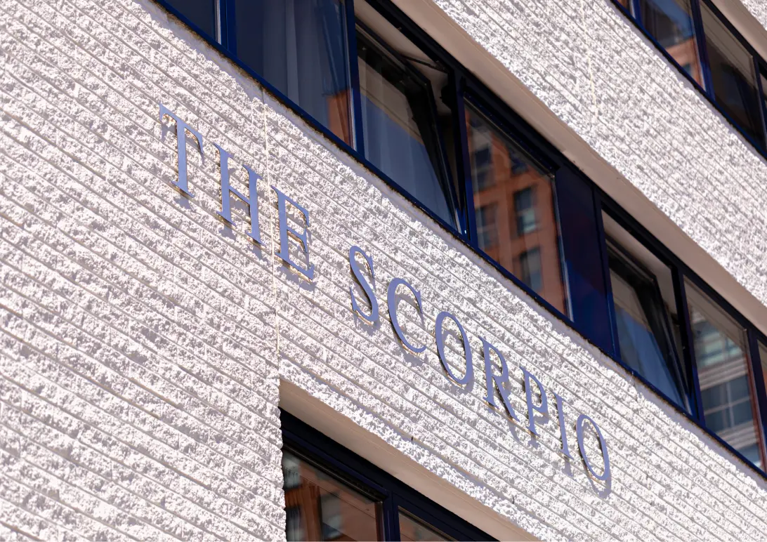 Dit voormalige kantoorgebouw is geheel getransformeerd tot modern wooncomplex met 76 woningen. De woningen zijn van alle gemakken voorzien: een badkamer met inloopdouche, keuken met inbouwapparatuur en woonoppervlak naar keuze. De woningen variëren namelijk in woonoppervlak van 30 m² t/m 69 m².De appartementen van The Scorpio hebben allemaal energie-index < 1,2. Duurzaam dus!