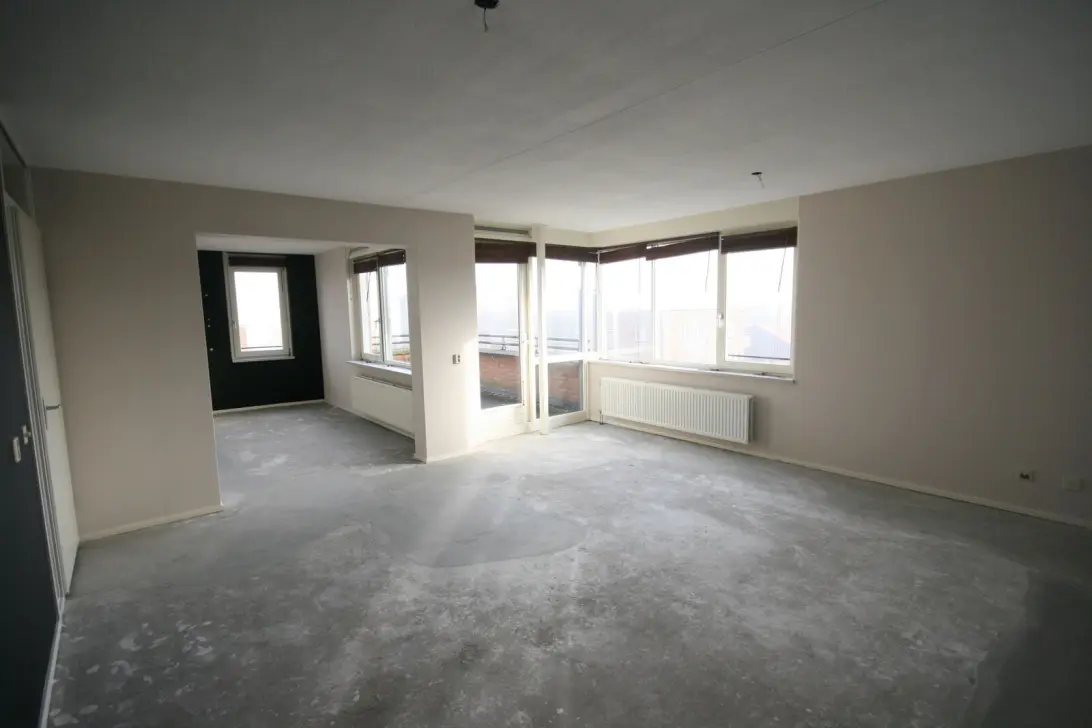 Entree op de derde etage, welke voorziet in een ruime living met open keuken (39m2) met gezellig uitzicht op het plantsoen. Verder biedt het appartement twee slaapkamers (16m2 & 14m2), separaat toilet en een badkamer met ligbad en douche. Eveneens is in de hal een ruime inpandige berging aanwezig voor het stallen van uw wasmachine.